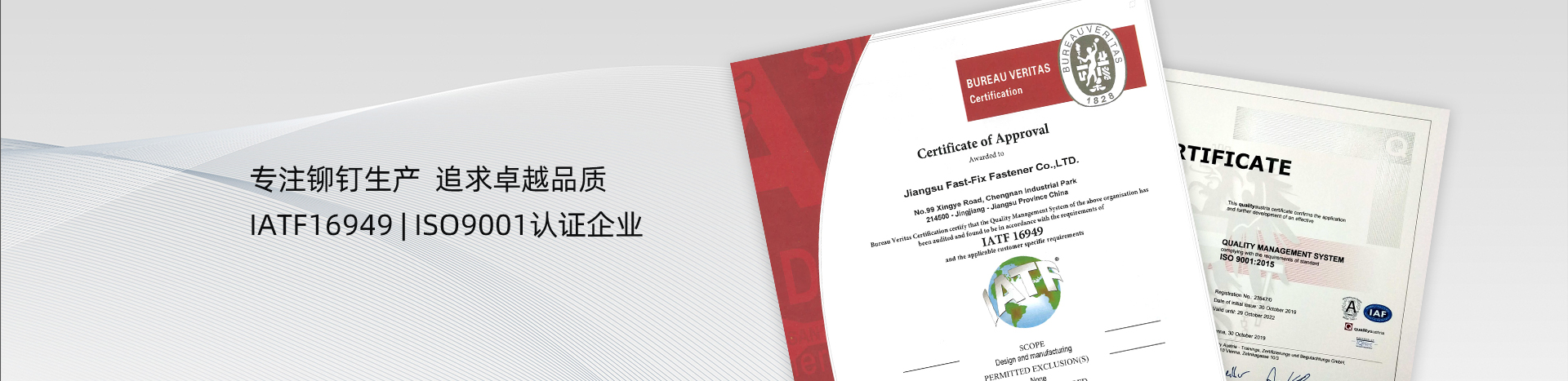 飛可斯鉚釘更新IATF16949質量體系證書