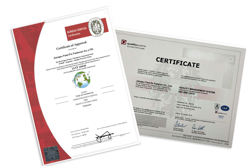 Company is IATF16949:2016 certified by Bureau Veritas, and ISO9001:2015 certified by Quality Austria. FASTFIX is committed to continuous improvement in management and working methods. We offer professional solutions, good service, together with superior quality products ensured by quality control tests at all stages of production.